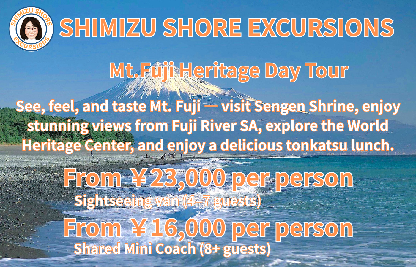🗻 Mt. Fuji Heritage Day Tour from Shimizu Port A Scenic Journey Through the Sacred Heritage of Mt. Fuji Experience the spiritual and cultural heart of Japan on this day trip from Shimizu Port, exploring the timeless beauty and reverence surrounding Mt. Fuji.
