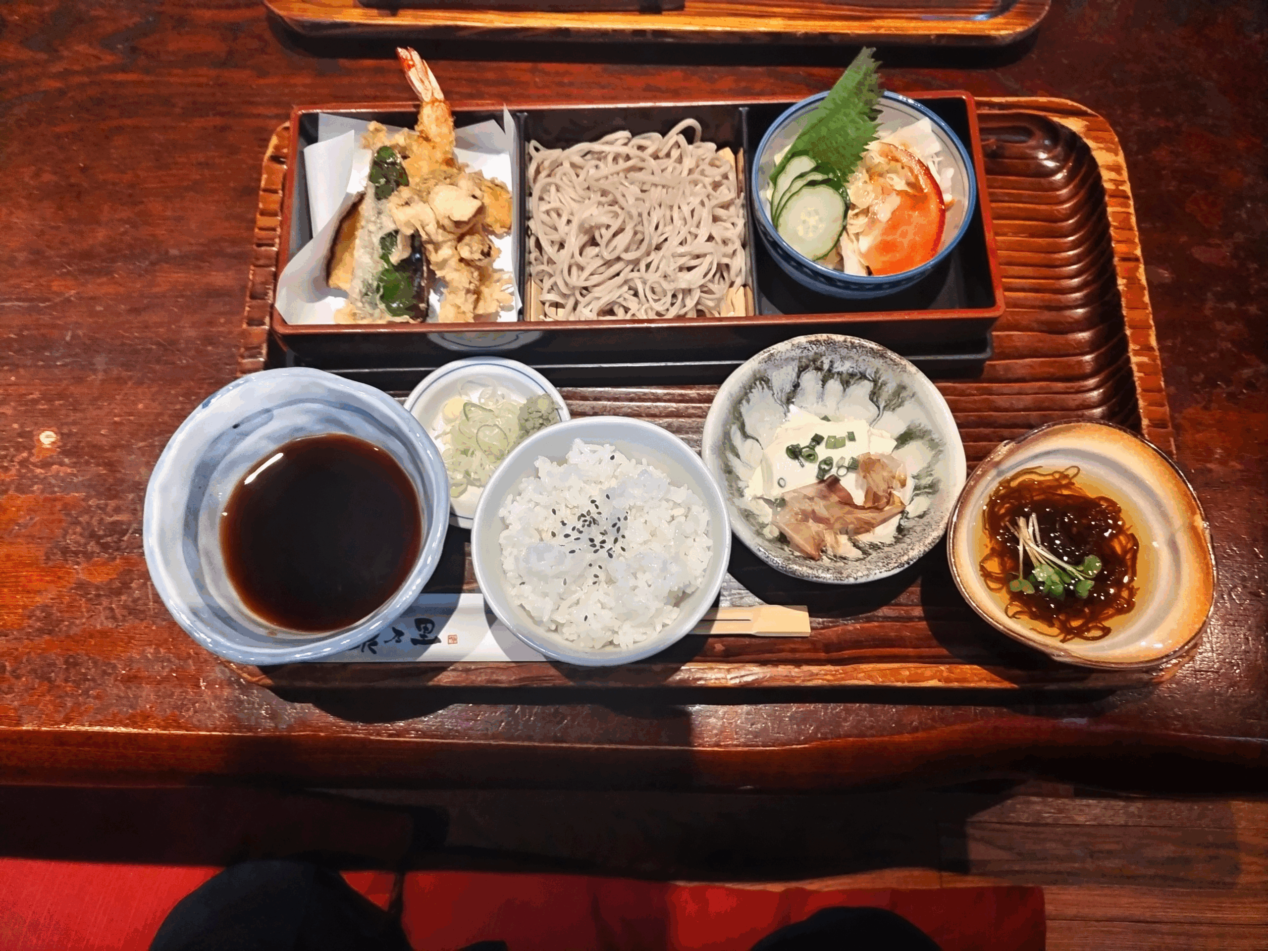 🍜 Japanese Lunch Handmade soba noodles and tempura lunch at Izumi-no-Sato.